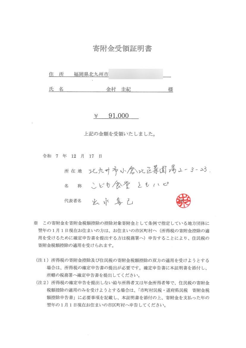 「子ども食堂 ともハピ」様へ寄付させていただきました